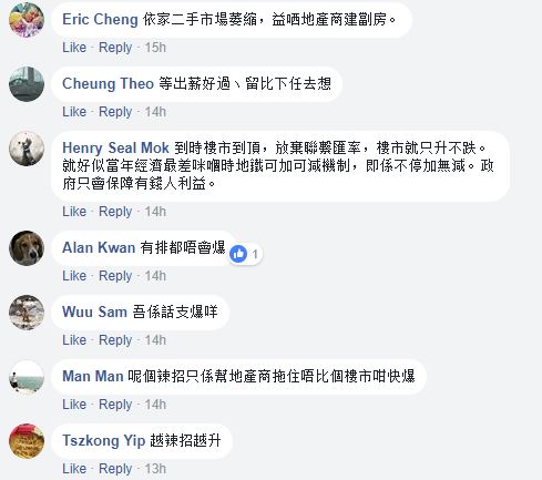 有網民認為現時地產二手市場萎縮,有利地產商興建劏房;亦有網民認為辣招只是為了令樓市泡沫別太快爆破。