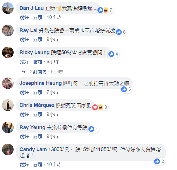 有網民指樓市是先抬價再劈價,樓價即使下降仍然維持於低水平,大多數小市民仍然無法應付。亦有網民指跌勢是好開始,希望當局再加息令跌勢持續。