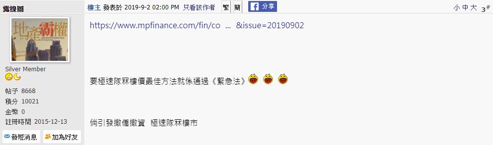 有網民同意夏雅朗的說法,認為房屋及樓價充斥問題,但政府就是欠缺膽量去解決這問題。亦有人認為香港一但通過《緊急法》可引發撤僑撤資,並且極速推跌樓市。